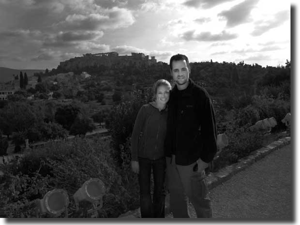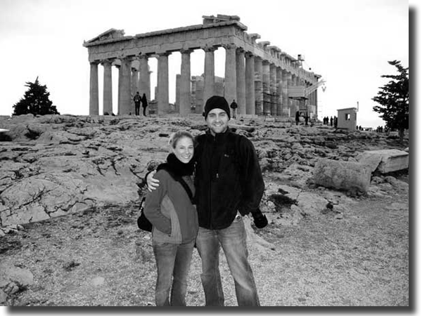 Standing in front of the Parthenon, we get our first picture together during our trip to Greece. January 2011
