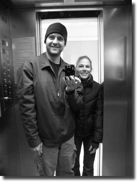 As we returned to our hotel in Athens, Greece after grabbing dinner, we realized it was the perfect moment for a reflection photo of us inside their tiny elevator. January 2011